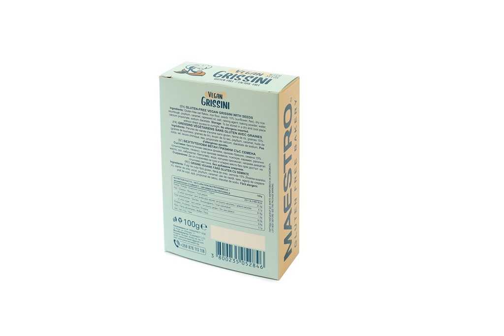 Леки, свежи гризини за похапване в движение. За почитателите на семената и здравословното безглутеново хранене. Приготвени в специализирана безглутенова пекарна, за да Ви гарантираме напълно чист състав.