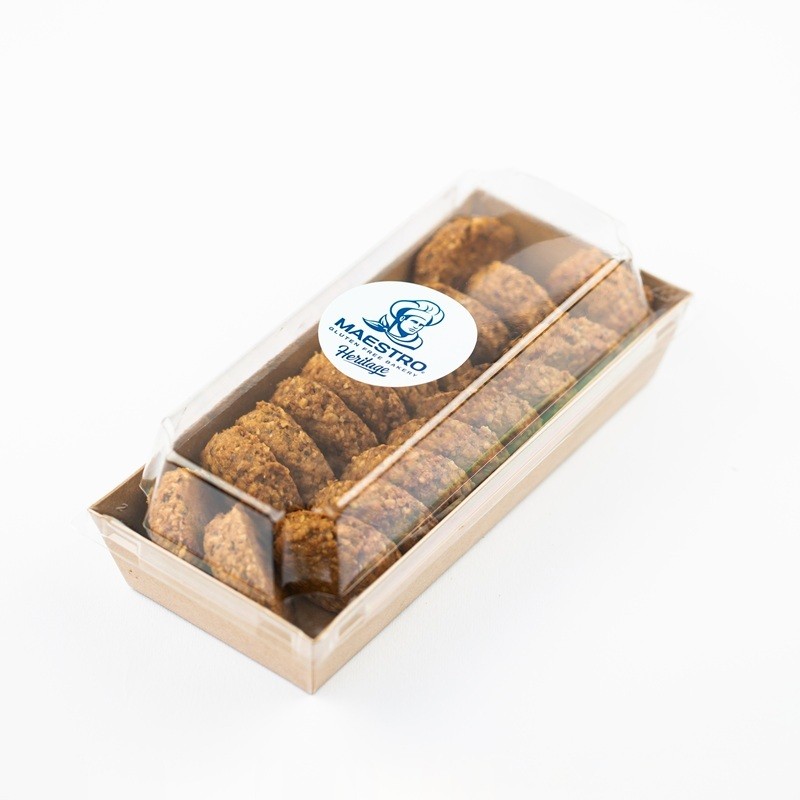 Безглутенови овесени ядки, БАДЕМОВО брашно, чиа 3,5%, вода, кокосово масло, кафява захар от цвекло, овкусител: лимон 3%; джинджифил на прах 1%, набухвател: бакпулвер.