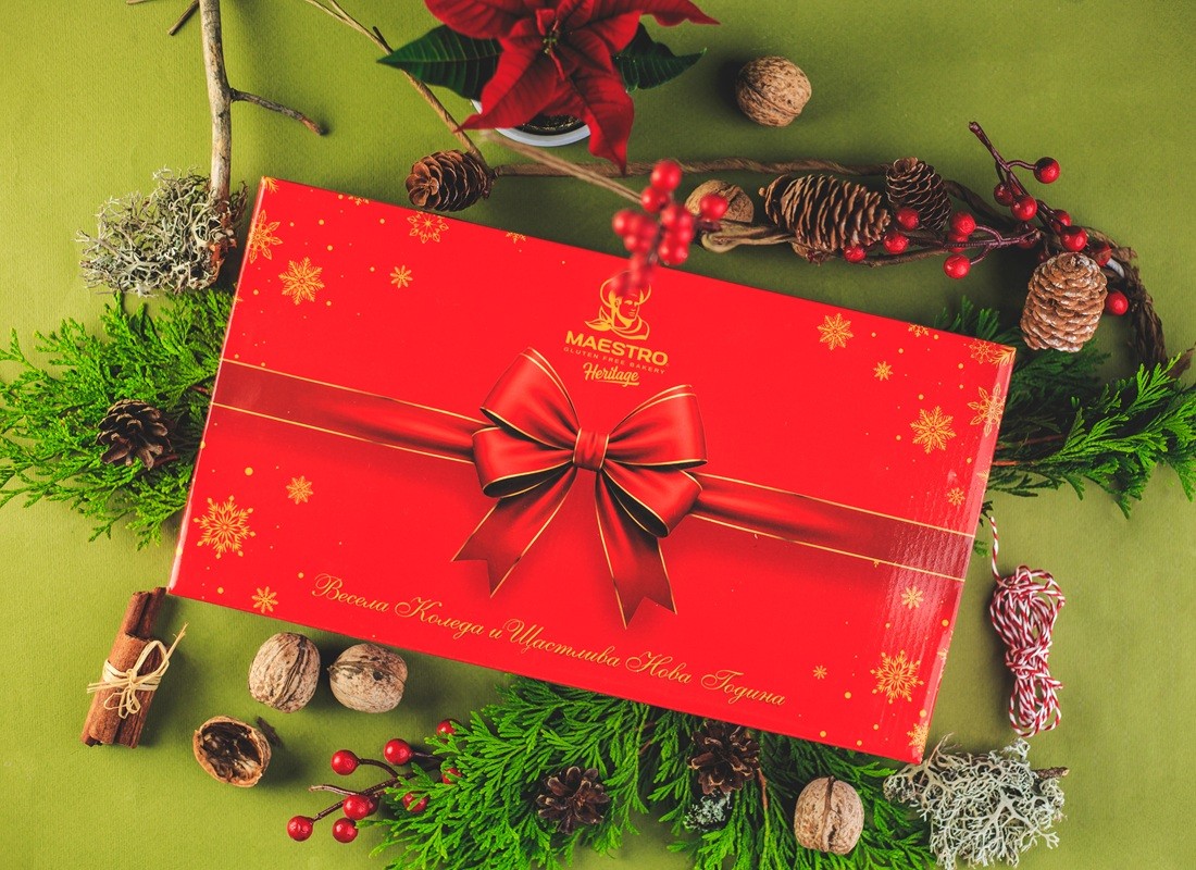✨️Празнична колекция от внимателно подбрани безглутенови сладки, събрани в луксозна коледна подаръчна кутия.