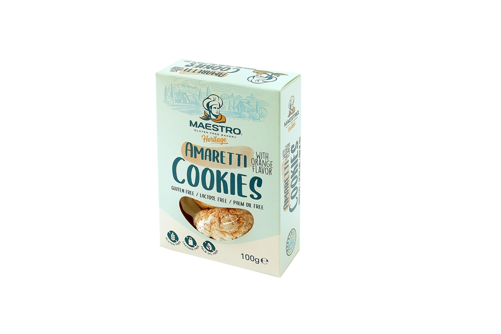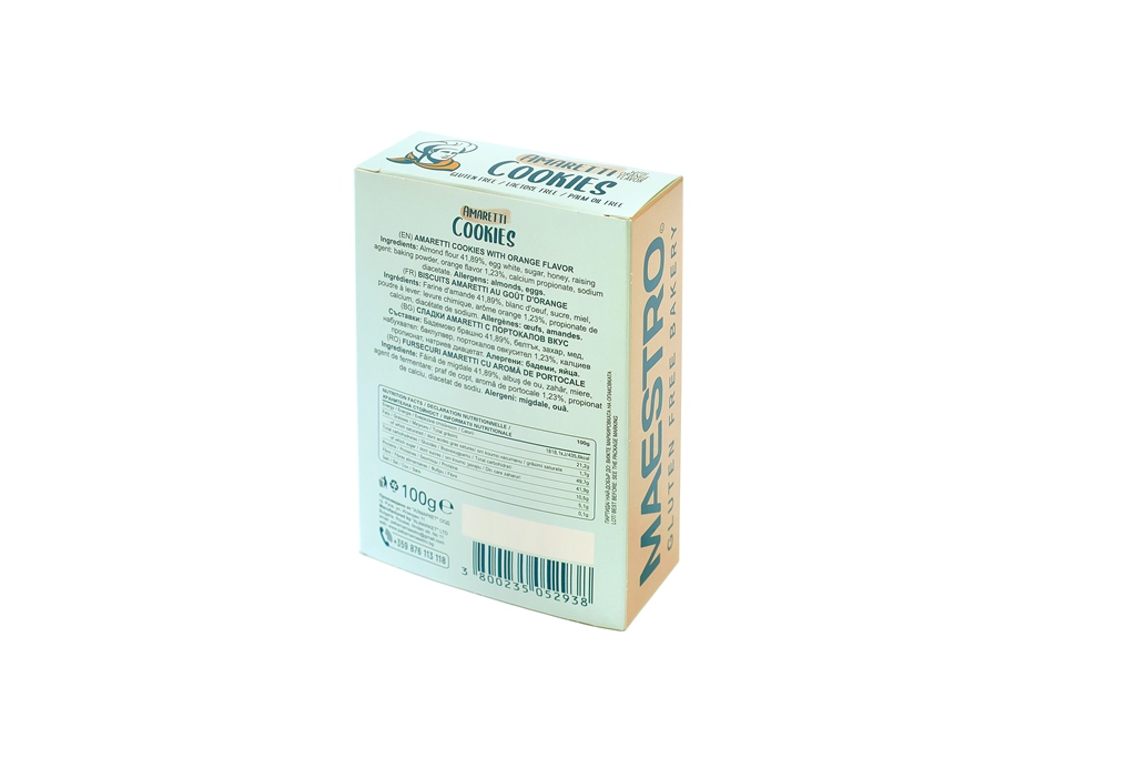 Неустоими италиански Амарети с портокалов вкус, които съчетават перфектно хрупкава коричка и сочна сърцевина.Приготвени в специализирана безглутенова пекарна, за да Ви гарантираме напълно чист състав.