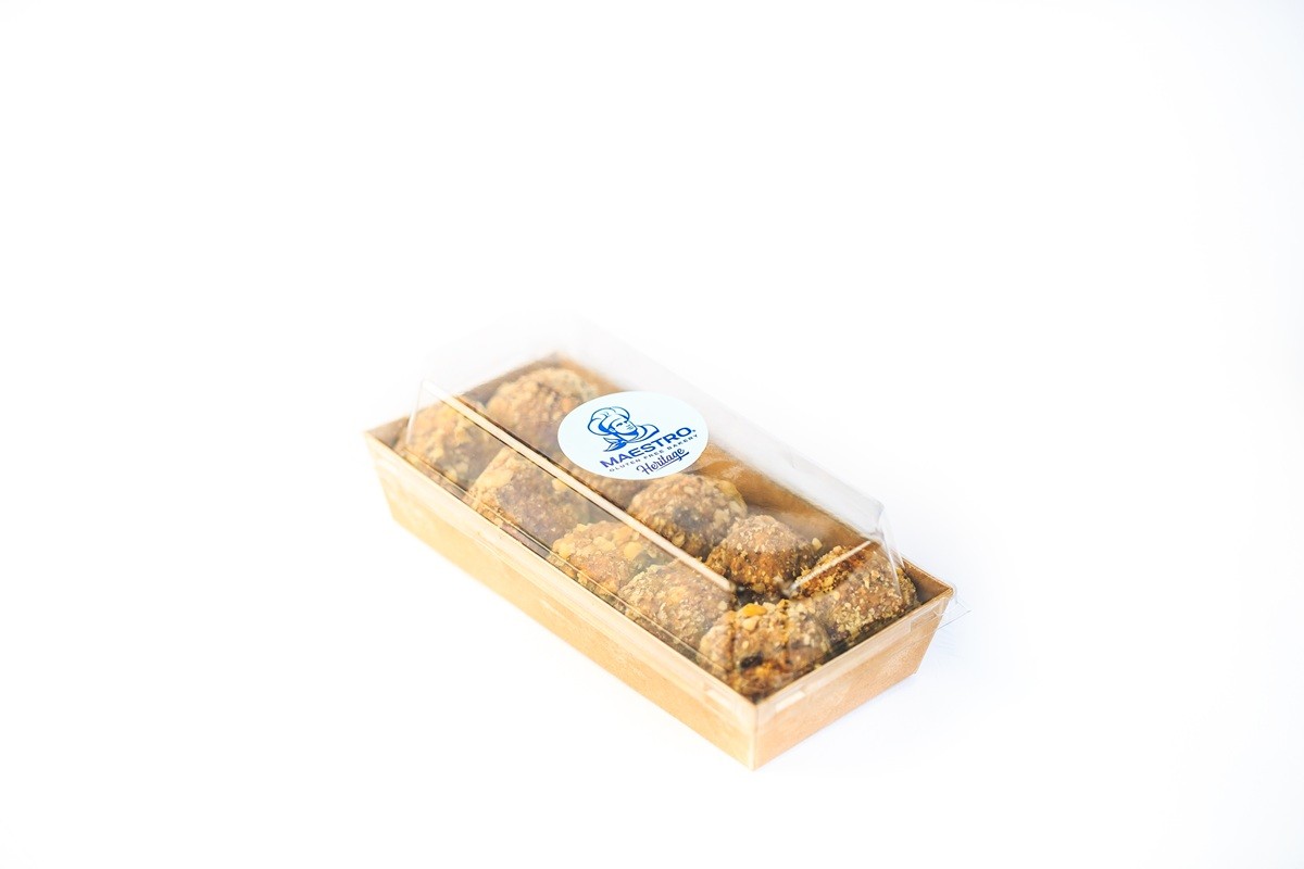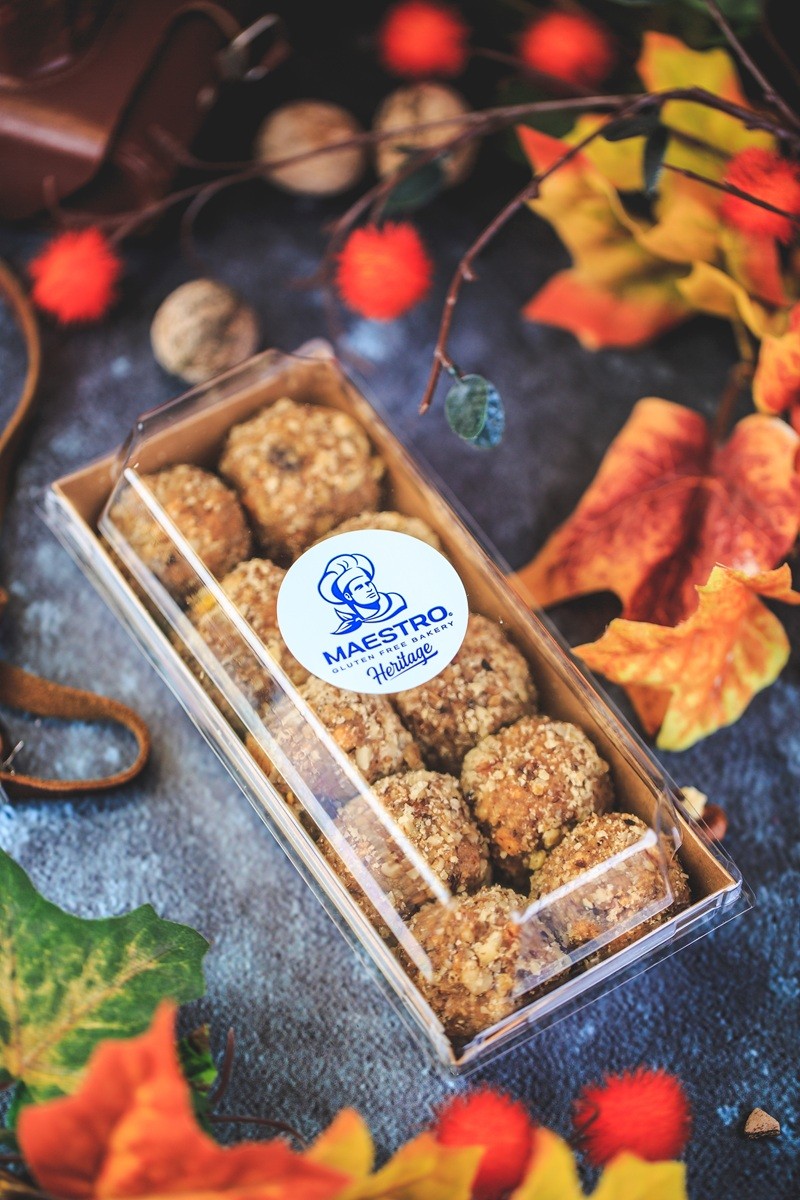 Изкусителни безглутенови трюфели, вдъхновени от оригинална чешка рецепта. Приготвени с подбрани орехи и сочни стафиди, ароматно обогатени с вино Марсала за фин и елегантен вкус.