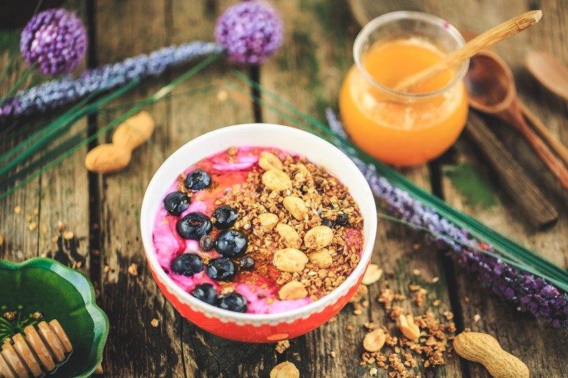 Безглутенови овесени ядки, ФЪСТЪЦИ 21%, мед 11.5%, ленено семе, шоколадови капки 6% ( какаова маса, захар, какаово масло, слънчогледов лецитин, полиглицерол полирицинолеат ), канела, ароматизатор: ванилия; сол.