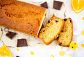 Съставки: ЯЙЦА, Оризово брашно, захар, кокосово масло, слънчогледово масло, БАДЕМОВО брашно, глюкоза, микс от плодове в променливо съотношение 7% (портокал, смокиня, череша, дюля, захар, вода, глюкоза, регулатор на киселинността: лимонена киселина), натурален шоколад 5,5% (какаова маса, захар, какаово масло, емулатор (слънчогледов лецитин), полиглицерол полирицинолеат), псилиум хуск, набухвател: бакпулвер; ароматизант: ванилия и портокал; сол. Опаковано в защитена газова среда.