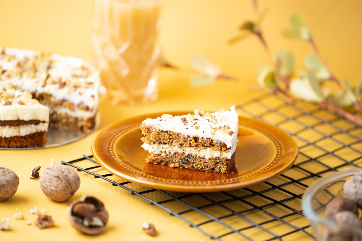 Открийте удоволствието от класическа морковена торта, създадена в безглутенов вариант и без добавена захар. Пухкавите блатове с настъргани моркови и ароматни орехи се допълват от нежен крем, приготвен с крема сирене и сметана.